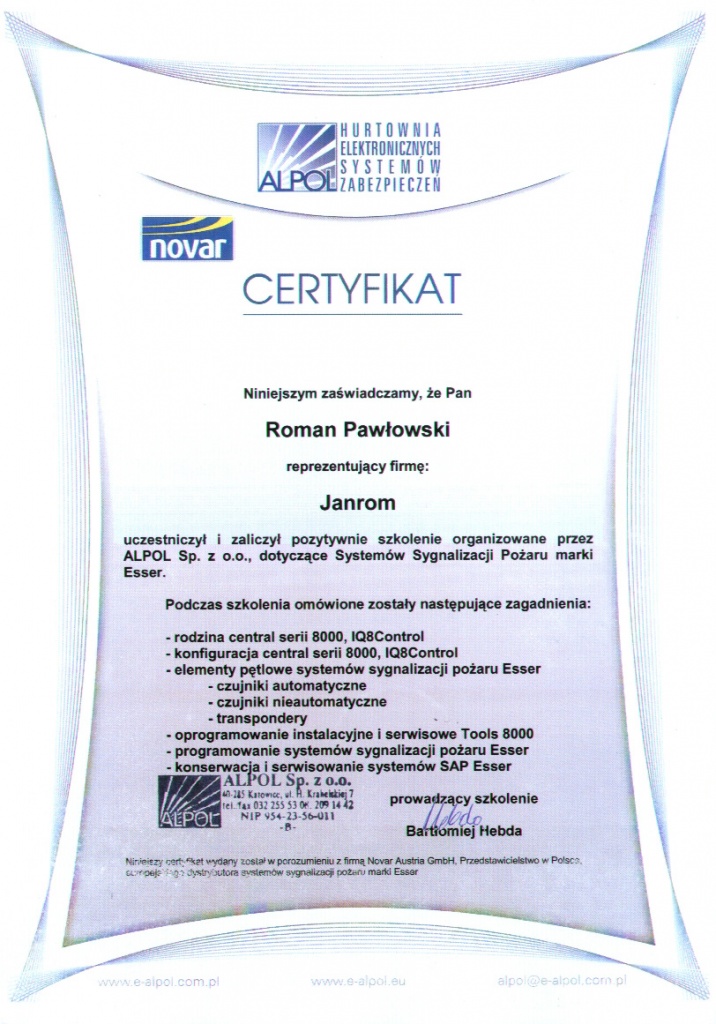 Vi innehar mange sertifikater fra kurs, seminarer og videreutdanning. Vi inviterer dere til å gjøre dere kjent med dem på nettsiden vår.