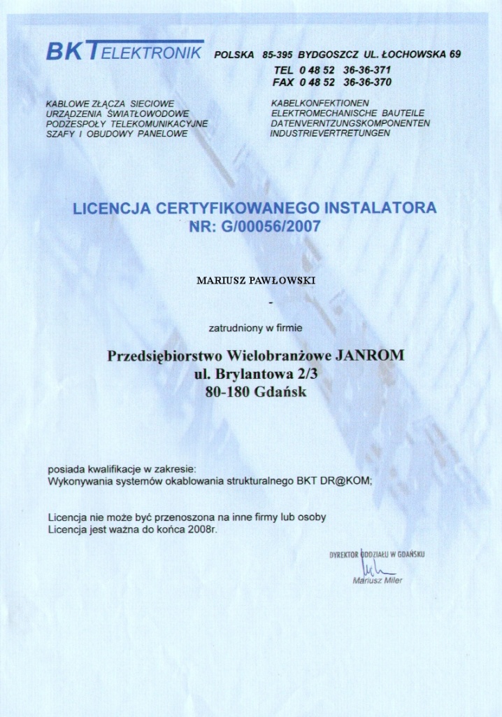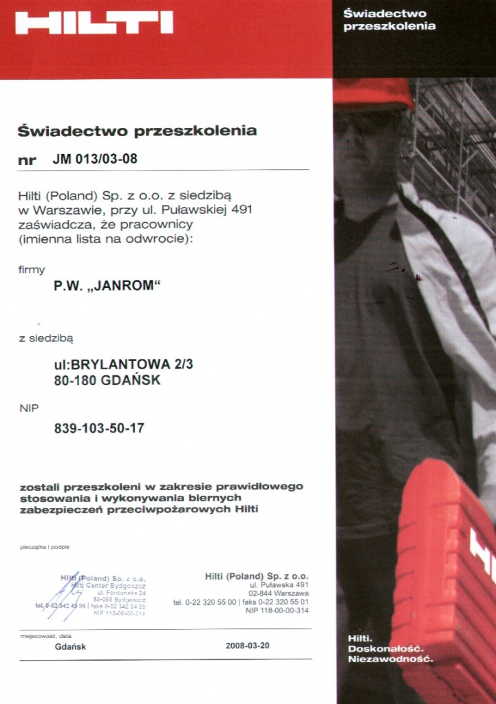 Sertifikater * Gjennomførte investeringsprosjekt * Våre referanser * Gjennomført videreopplæring
